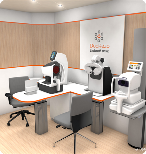 L’espace e-santé DocRezo vous garantit l’accès à une téléconsultation en ophtalmologie près de votre domicile. Avec l’aide d’un assistant médical présent avec vous dans un plateau technique moderne, vous bénéficiez d’un examen complet sur place dans un délai court.
